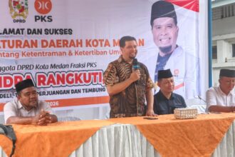 Medan,-Wakil Wali Kota Medan H Zakiyuddin Harahap menyerahkan santunan kepada anak yatim-piatu dalam rangkaian kegiatan buka puasa bersama yang digelar DPD Partai Gerindra Sumatera Utara yang digelar di Hotel Santika Dyandra, Sabtu (7/3/2026). Penyerahan santunan tersebut dilakukan Zakiyuddin Harahap bersama jajaran pengurus DPD Partai Gerindra Sumut, di antaranya Ketua Ade Jona Prasetyo, Sekretaris Sugiat Santoso, serta Bendahara Meriyawati Amelia. Kegiatan…