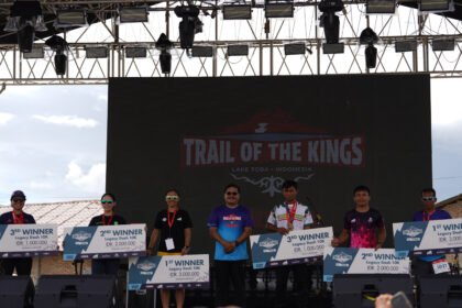 Sekdaprov Sumut Serahkan Piala Pemenang Lari Lintas Alam Trail of The Kings Danau Toba