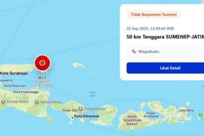 Sumenep,-Gempa bumi berkekuatan Magnitudo 6,5 mengguncang Kabupaten Sumenep, Jawa Timur, Selasa (30/9/2025)…
