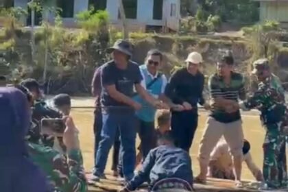 Aceh Tengah,-Rakit darurat yang ditumpangi Wakil Gubernur Aceh, Fadhlullah Dek Fadh terbalik…