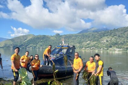 Kapolres Samosir Aksi Bersih-di Water Front Pangururan dan Tepi Danau Toba