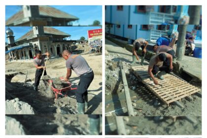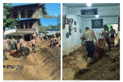 Gotong Royong Brimob dan Warga Bangun Rumah Swadaya Pasca banjir di Tolang Julu