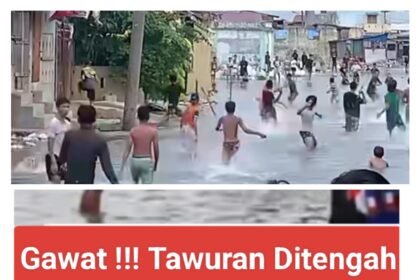 Gawat, Ini Belawan Bung !!! Tawuran Ditengah Banjir Rob