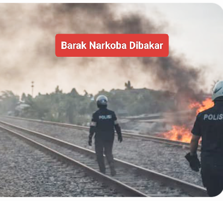 Medan – Keberadaan barak narkoba di pinggiran rel kereta api, Desa Tembung, Kecamatan Percut Sei Tuan, Kabupaten Deli Serdang digrebek dan dibakar petugas Polsek Medan Tembung.