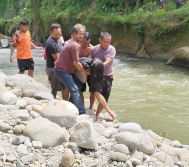 Saat terbawa arus, tangan keduanya terlepas. AP terseret hingga tersangkut di celah batu besar di tengah derasnya aliran sungai, sementara rekannya berhasil selamat dan langsung meminta pertolongan warga sekitar.