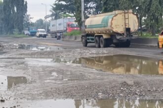 Waduh…Jalan Rusak di Pintu Masuk Tol Belmera Belum Juga Diperbaiki