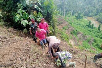 Manager PT.BSRE Bersama Kepala Desa Aek Tarum Aksi Penanaman Pohon Kayu di Sekitaran DAS