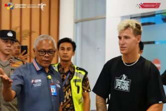 Lombok,-Pembalap Monster Energy Yamaha, Fabio Quartararo terpantau sedang menikmati senja sore dengan jogging di sirkuit Mandalika, Lombok, Kamis (12/10/2023). Dia…