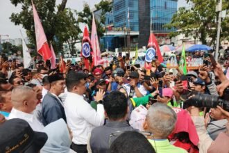Medan, -Gubernur Sumatera Utara Bobby Afif Nasution sambut aspirasi ratusan buruh di depan kantor Gubernur Jalan Pangeran Diponegoro, Senin (3/11)…