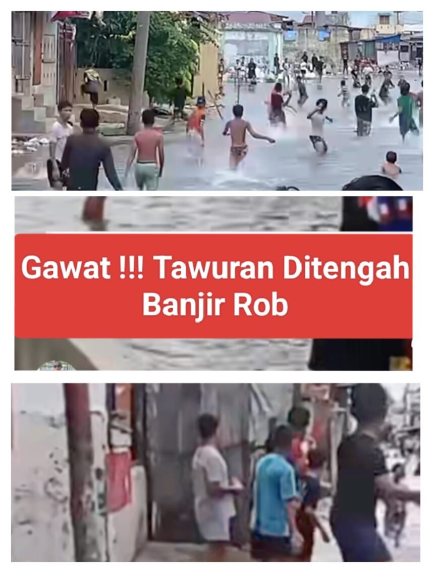 Gawat, Ini Belawan Bung !!! Tawuran Ditengah Banjir Rob