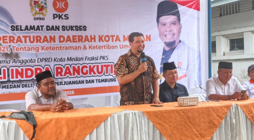 Medan,-Anggota DPRD Kota Medan dari Fraksi Partai Keadilan Sejahtera (FPKS), H. Doli Indra Rangkuti, SE melaksanakan Sosialisasi Produk Hukum Daerah ke-III Tahun Anggaran 2026 terkait Peraturan Daerah Kota Medan Nomor 10 Tahun 2021 tentang Ketentraman dan Ketertiban Umum, Minggu (8/3/2026).
