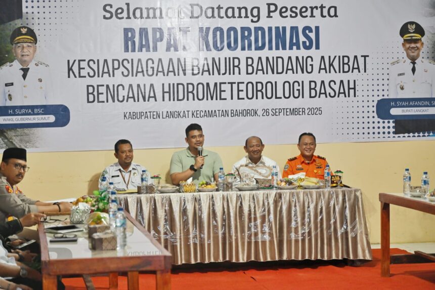 Gubernur juga menggelar rapat koordinasi kesiapsiagaan banjir bandang akibat bencana hidrometeorologi basah secara virtual bersama Kepala BMKG RI Dwikorita Karnawati di Kantor Camat Desa Timbang Jaya Kecamatan Bahorok, Kabupaten Langkat, Jumat (26/9/2025) lalu.