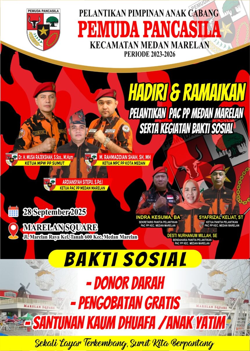 Marelan – Minggu siang ini (28/09/2025) mulai pukul 14.00 WIB Pimpinan Anak Cabang Pemuda Pancasila (PAC.PP) Kecamatan Medan Marelan melaksanakan kegiatan pelantikan.