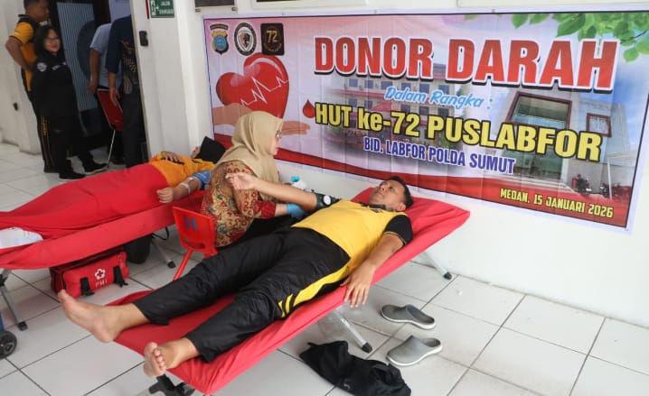 Reading: HUT ke-72 Labfor Polri, Bidlabfir Poldasu Gelar Bakti Sosial dan Donor Darah