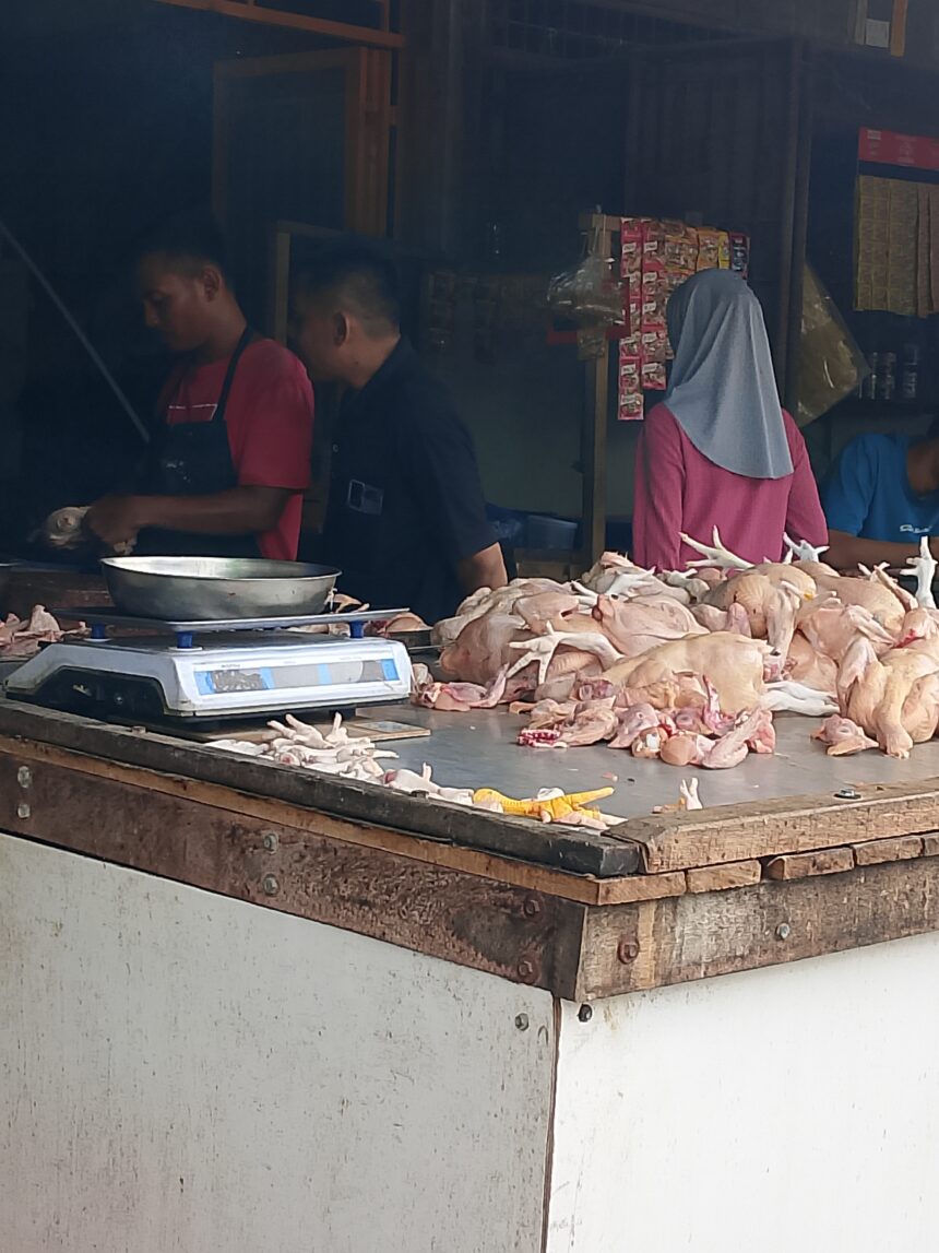 ” Harga pengambilan kami aja memang lebih dari Rp30 ribu perkilogramnya sehingga kami menjual seharga Rp34 ribu perkilogramnya”, tutur Anto salah seorang pedagang ayam potong di pasar Marelan, Jumat (15/08/2023).(Gs/Mrl).