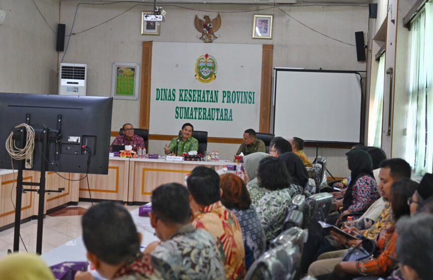 Medan, -Mengunjungi Dinas Kesehatan Sumatera Utara (Sumut), Sekretaris Daerah Provinsi (Sekdaprov) Sumut Togap Simangunsong mengingatkan tentang sejumlah program nasional, yang harus menjadi prioritas bersama, karena sangat menentukan kualitas generasi masa depan. Antara lain, program Universal Health Coverage (UHC), penurunan stunting dan Makanan Bergizi Gratis (MBG).