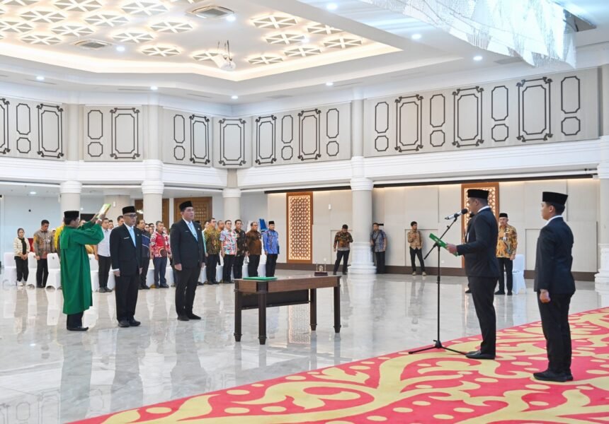 MEDAN – Gubernur Sumatera Utara (Sumut) Muhammad Bobby Afif Nasution melantik dan mengambil sumpah jabatan dua Pejabat Pimpinan Tinggi Pratama (Eselon II) di Lingkungan Pemerintah Provinsi (Pemprov) Sumut. Kepada para pejabat yang dilantik, Bobby mengingatkan, jangan sampai melakukan tindak pidana korupsi.