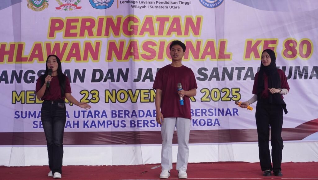Medan,- Puluhan mahasiswa Universitas Audi Indonesia bersama jajaran dosen, Rektor, serta Ketua Yayasan Audi Husada turut memeriahkan Peringatan Hari Pahlawan Nasional 2025 yang digelar di LLDikti Wilayah I Sumatera Utara (Sumut), Minggu (23/11/2025). Kehadiran civitas akademika Universitas Audi Indonesia memberi warna dan energi tersendiri dalam kegiatan kolaboratif antara LLDikti Wilayah I dan Forum Komunitas Bela Nusantara Indonesia (FKBNI) tersebut.