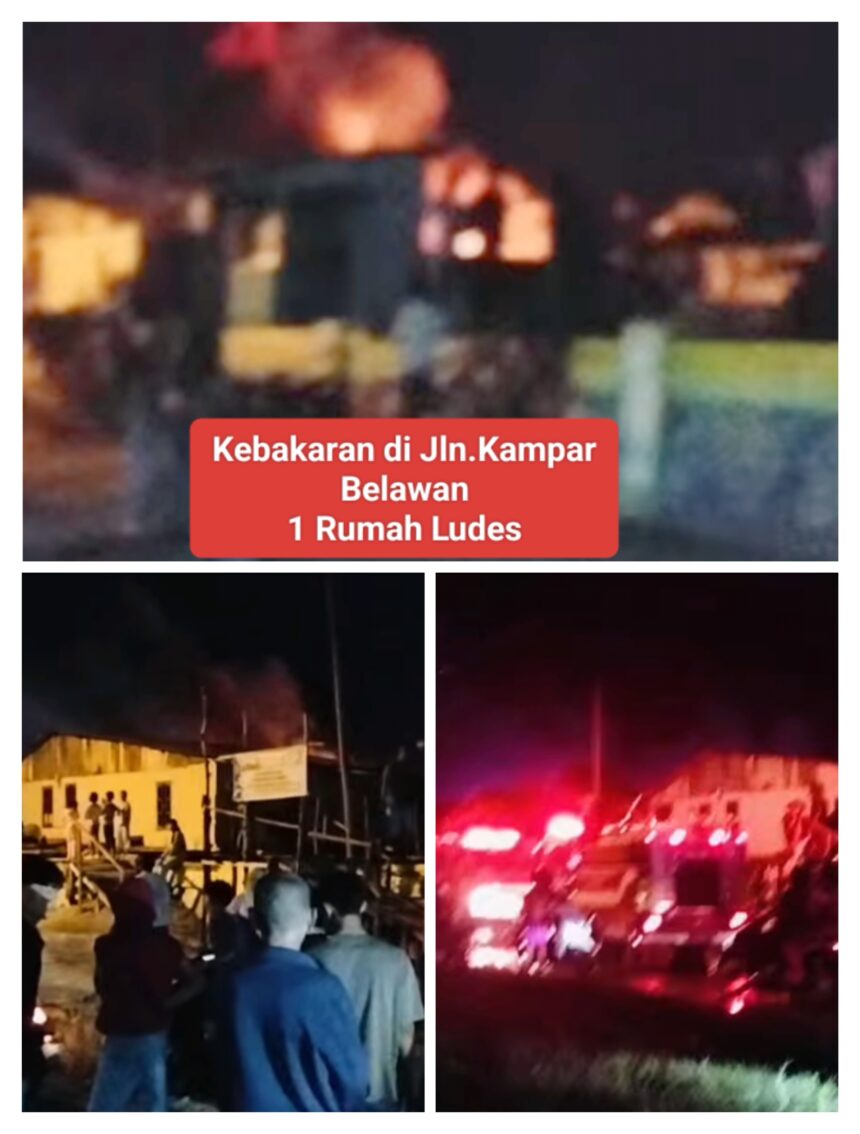 Belawan – Kebakaran melanda 1 rumah di jalan Kampar Belawan 1 Kecamatan Medan Belawan, Sabtu malam (01/11/2025).
