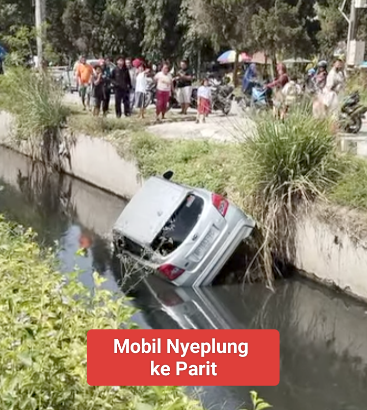 Melihat ada mobil masuk parit, spontan saja warga berkerumun langsung memberikan pertolongan pada si supir yang belum jelas diketahui identitasnya tersebut.