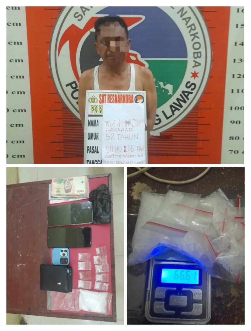 Sumut – Tim Opsnal Satuan Reserse Narkoba Kepolisian Resor Padang Lawas (Satresnarkoba Polres Palas) kembali menangkap seorang pengedar narkotika jenis sabu Berinisial MRH, (52), warga desa Pancaukan, Kecamatan Barumun, Kabupaten Palas, di salah satu rumah yang berlokasi di Wek I, Pasar Sibuhuan, Kecamatan Barumun, Kabupaten Palas. Sabtu. (28/02/2026), Pukul 03.30 wib hingga selesai.