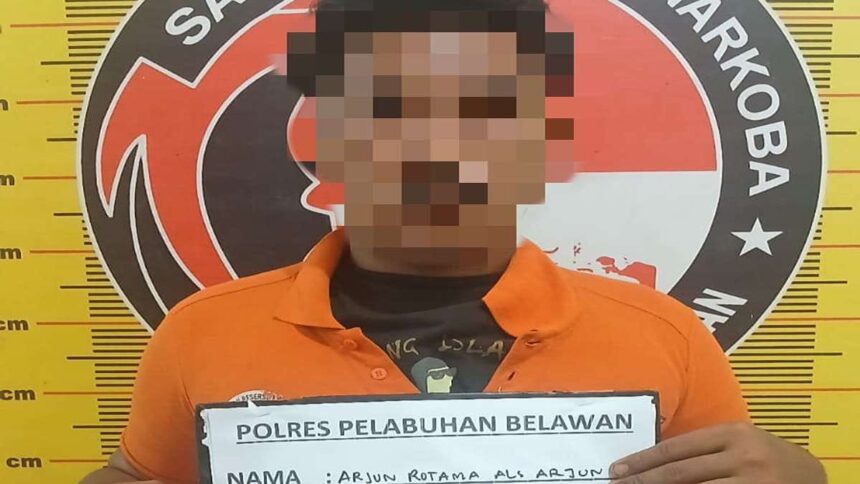 Info yang diterima, Kamis (25/09)2025) menyebutkan, kalau petugas berhasil melakukan penangkapan terhadap seorang pengedar narkoba jenis shabu di Jalan Kelapa, Kelurahan Belawan Sicanang. Tersangka yang diamankan adalah Arjuna (32).