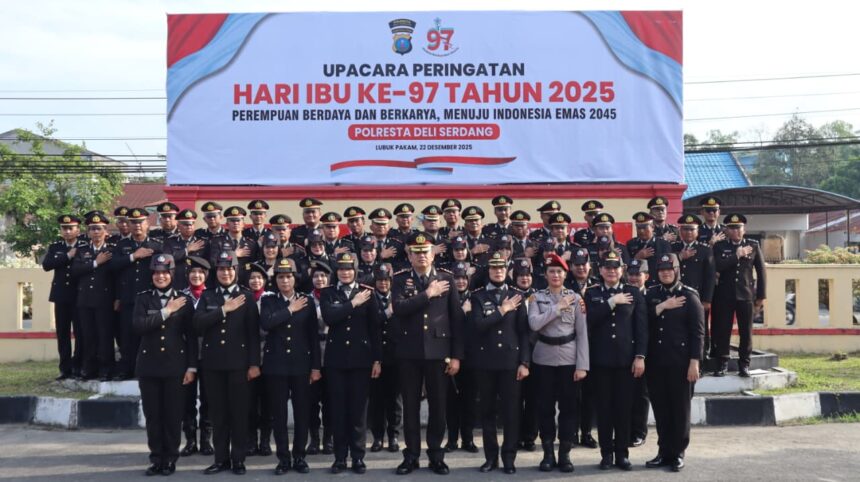 Deli Serdang – Polresta Deli Serdang menggelar upacara peringatan Hari Ibu ke-97 Tahun 2025 di Lapangan Apel Mapolresta Deli Serdang ,Senin (22/12/2025).