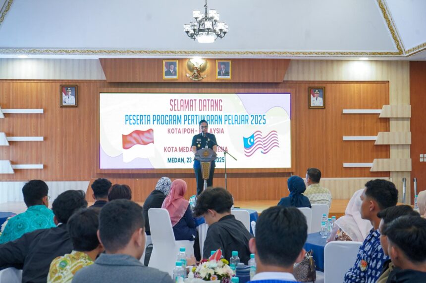 Medan,-Wali Kota Medan Rico Tri Putra Bayu Waas beramah tamah dengan pelajar Bandar Raya Ipoh, Malaysia, Selasa (24/6/2025) di pendopo rumah dinas wali kota. Rico Waas berharap peserta Program Pertukaran Pelajar Medan-Ipoh ini siap menjadi agen perubahan dan generasi muda yang terbuka.