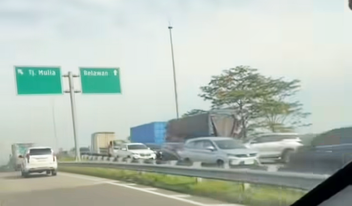 Medan – Diduga melibatkan sekitar 10 kendaraan, kecelakaan beruntun terjadi di ruas Tol Belawan (Belmera) Kamis Pagi (09/04/2026).