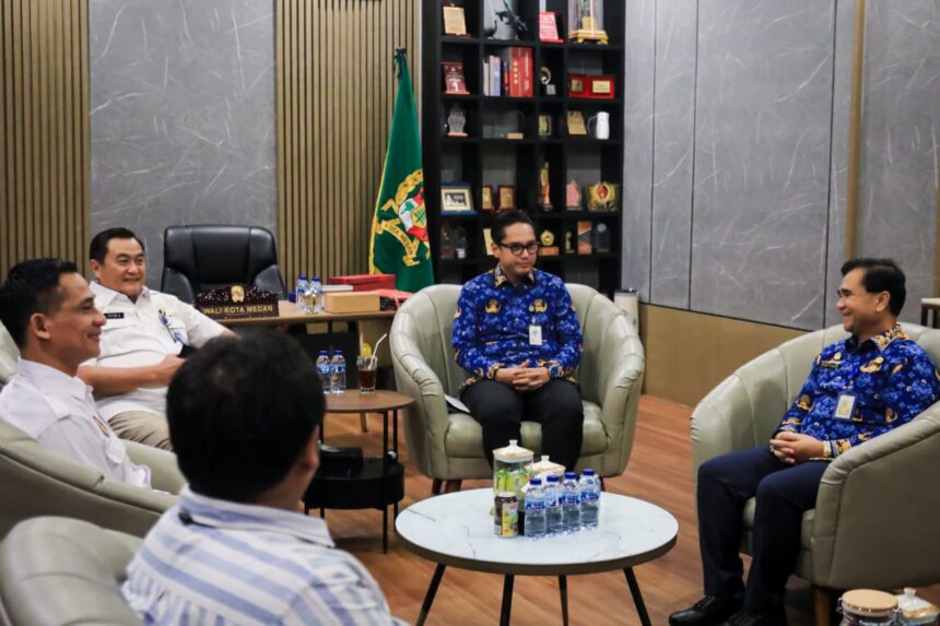 Medan,-Wali Kota Medan Rico Tri Putra Bayu Waas menerima kunjungan Kepala Badan Narkotika Nasional (BNN) Provinsi Sumut, Brigjend Pol Tatar Nugroho di rumah dinas Wali Kota, Rabu (17/12/25).