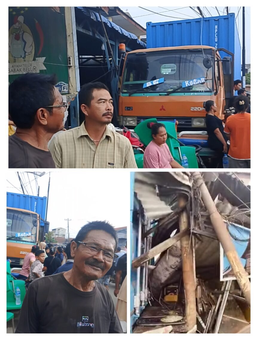Marelan – Truk Kontaener yang menghantam 3 tempat usaha (warung) milik warga di jalan Titi Pahlawan Kelurahan Rengas Pulau Kecamatan Medan Marelan hingga kini belum ada diganti rugi menyebabkan pemilik warung mengalami kerugian yang besar dimana biasanya bisa berusaha menghasilkan pundi- pundi rezeki.