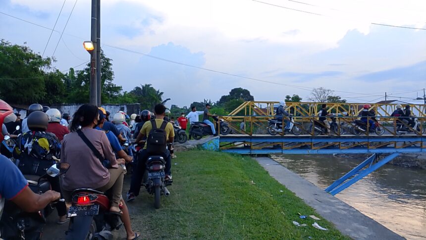 Akhirnya pengguna jalan yang umumnya berkenderaan sepeda motor menempuh jalan berliku dan jauh menuju ke lokasi jembatan jalan setapak atau jalan jembatan yang hanya bisa dilalui satu persatu kenderaan sepeda motor saja.