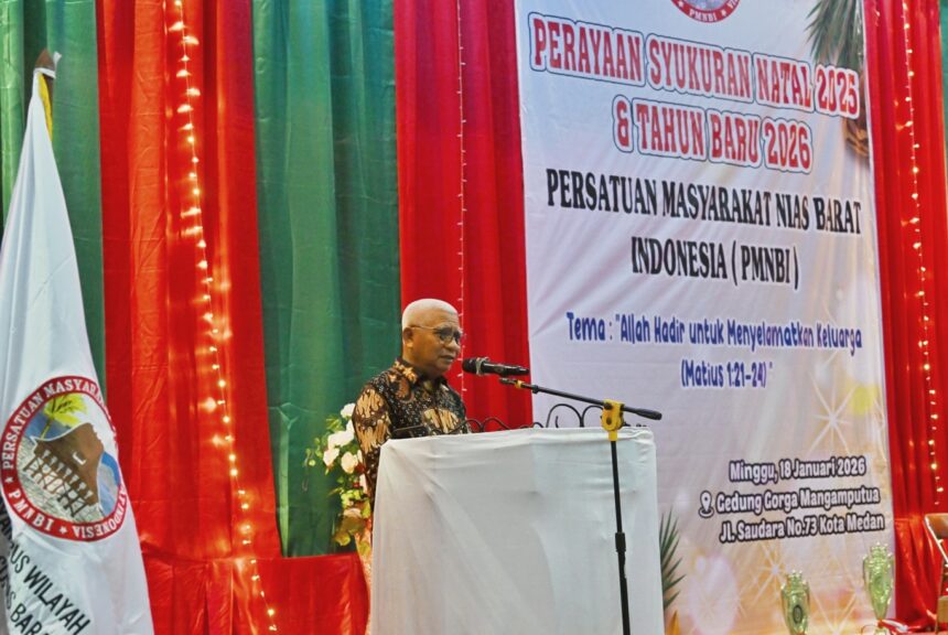 Medan,-Wakil Gubernur (Wagub) Sumatera Utara (Sumut) Surya mengajak Persatuan Masyarakat Nias Barat Indonesia (PMNBI) untuk terus berperan sebagai duta persaudaraan, duta budaya Nias, serta mitra strategis pemerintah dalam membangun Sumut. Hal tersebut disampaikannya pada Perayaan Natal dan Tahun Baru 2026 yang diselenggarakan PMNBI di Gedung Gorga Mangamputua, Minggu (18/1/2026).